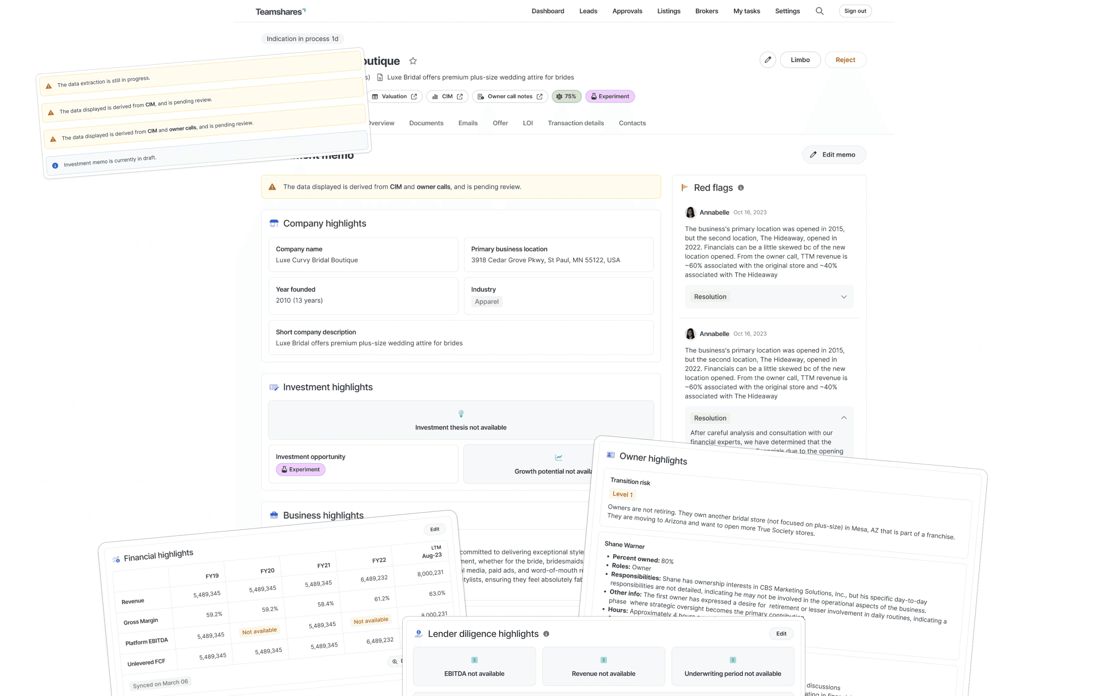 The Investment Memo project was designed to accelerate lead preparation for transaction associates and streamline acquisition decision-making for C-suite executives at Teamshares, enabling smarter acquisitions and scaling investment impact.