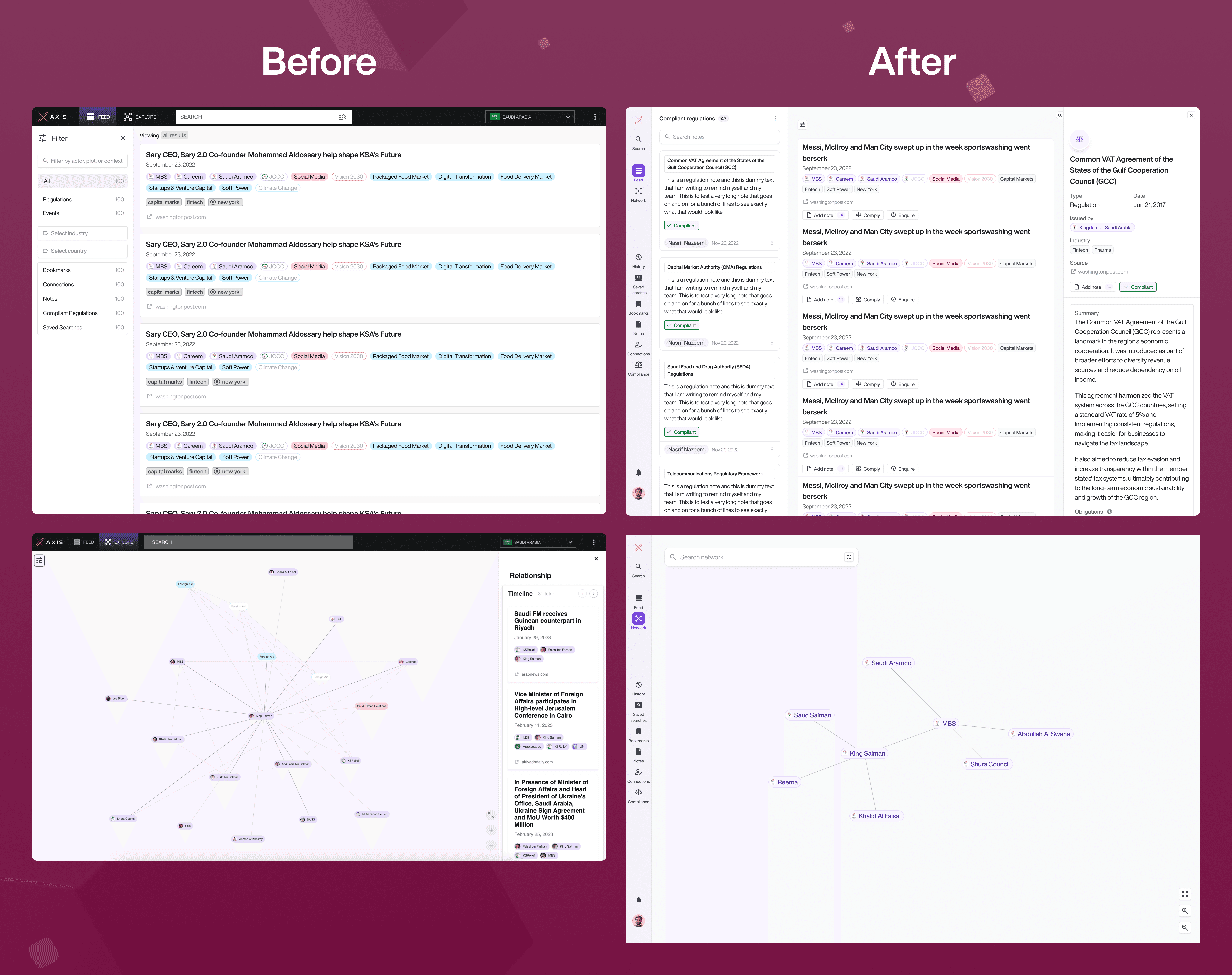 Axis is a platform that helps corporate affairs teams understand and track business, policy, and regulatory environments. But the product had two major issues: